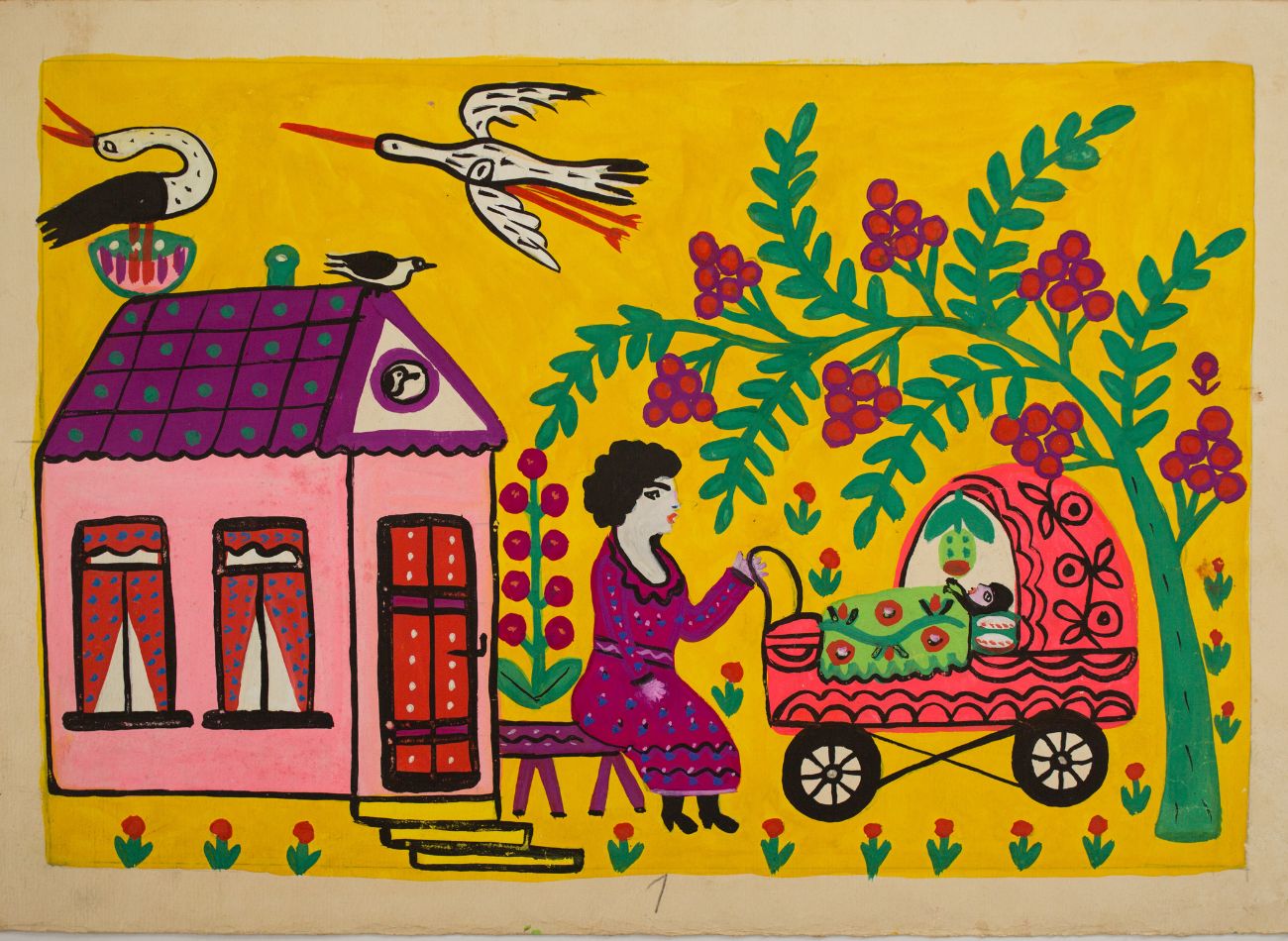 A perhaps more sophisticated expression of this tendency has been to analyse some of the subtle thematic undercurrents of Prymachenko’s works, which have of course been given more time to mature than those of artists working today, and understand them as products of her country’s history of genocide and subjugation, about which there has recently been a welcome increase in recognition and interest. But her work is more than just a reaction to the past; it is intentionally subversive, both politically and aesthetically. Her way of depicting life, the fact that she rejects authority by dealing with the lives of ordinary people, and her embrace of abstraction and fantasy is both deeply meaningful and liberating in its own right, but also revolutionary in the face of the mindless kitsch of Soviet realism. This is why the frequent use of the word ‘naïve’ to describe her work is so ironic.